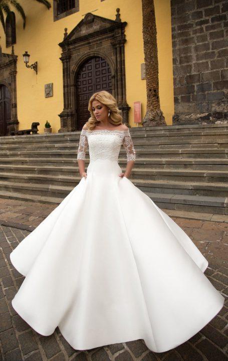 Les robes de bal classiques sont un choix courant parmi les mariées. Après tout, ce sont ces robes qui vous permettent de créer comme une image fabuleuse où vous vous sentirez comme une vraie princesse. Habituellement, ces robes sont très luxuriantes et peuvent avoir plus d’une jupe. Le plus souvent, ils sont brodés de perles, de perles, de pierres décoratives et d’autres décorations.
