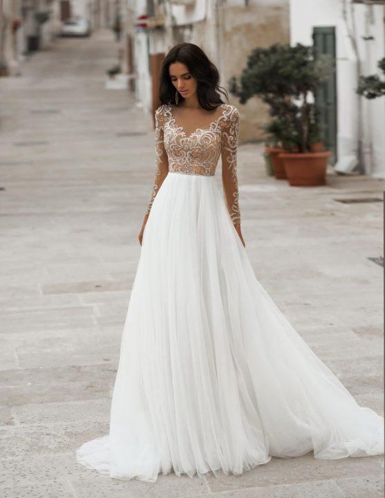 La coupe droite de la robe de mariée a sa magie. Ce sont légers, comme des robes de mariée aérées qui ont une coupe droite. Il est parfait pour une cérémonie modeste et peut satisfaire le goût de la mariée la plus exigeante. La robe peut être finie de n’importe quelle manière.