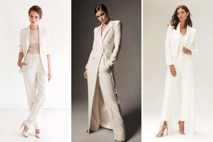 Une robe de mariée très inhabituelle pour la mariée est un costume. De tels costumes sont toujours blancs comme neige, mais parfois des modèles de couleur ivoire apparaissent. Le plus souvent, ces modèles conviennent aux femmes qui ont déjà été mariées. Mais si vous aimez ce style, choisissez simplement un costume et vous serez génial.