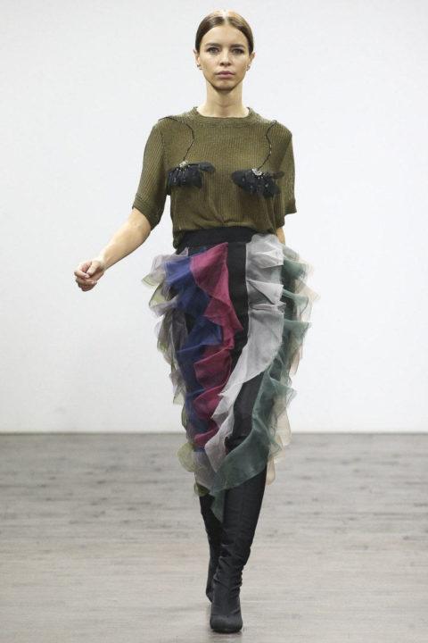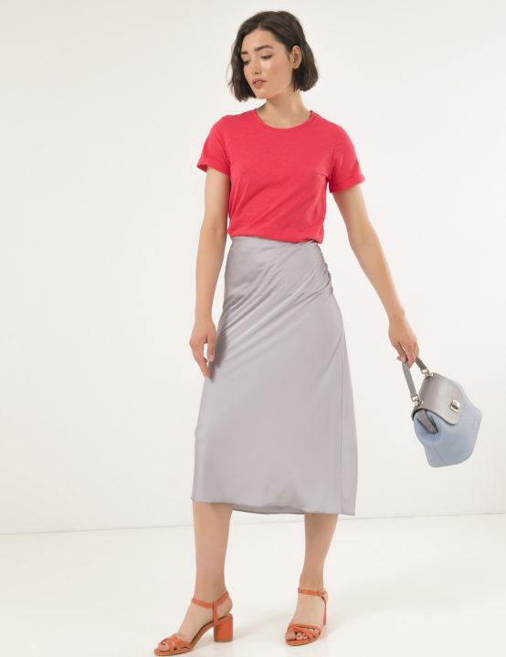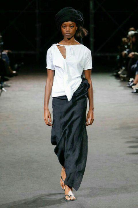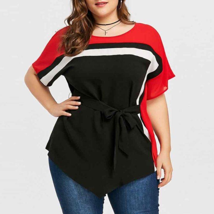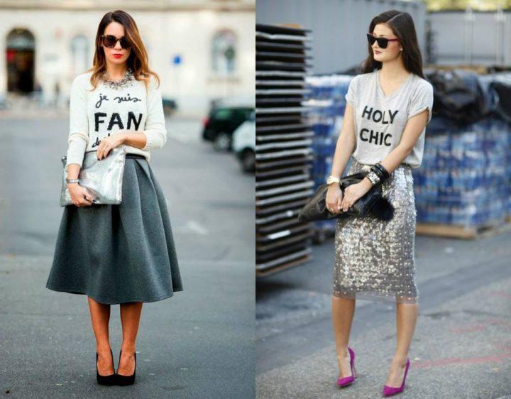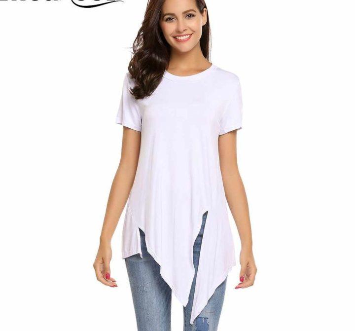 L’asymétrie est maintenue dans de nombreuses collections de mode cette année, dans les robes, les jupes et aussi les T-shirts. Les concepteurs conseillent de faire attention aux t-shirts asymétriques le long du bord inférieur du produit, ainsi qu’à la coupe évasée.