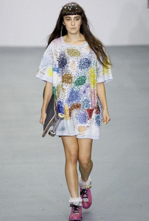 Les modèles décorés de paillettes sont colorés et originaux. Un nœud pour les jeunes complétera un t-shirt surdimensionné dans un style sportif avec un jean.