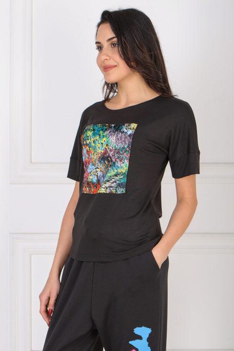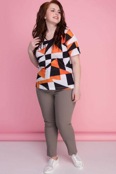 Une telle impression ne perd pas de sa pertinence, seules les préférences changent légèrement. En 2021, un parti pris a été fait pour l’abstraction dans les couleurs vives. Les t-shirts de ce thème auront l’air avantageux avec des pantalons foncés, ainsi que des articles en denim.