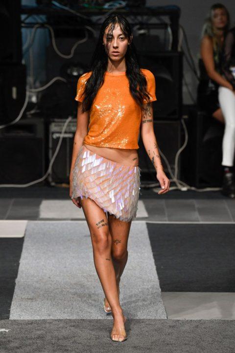 Pense à opter pour un t-shirt à paillettes orange et une jupe courte brillante pour un look audacieux et accrocheur.