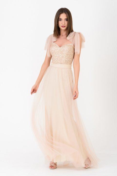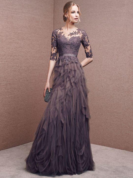 Les stylistes conseillent de faire attention aux robes longues avec une jupe en tulle, une telle robe a l’air douce et sophistiquée.