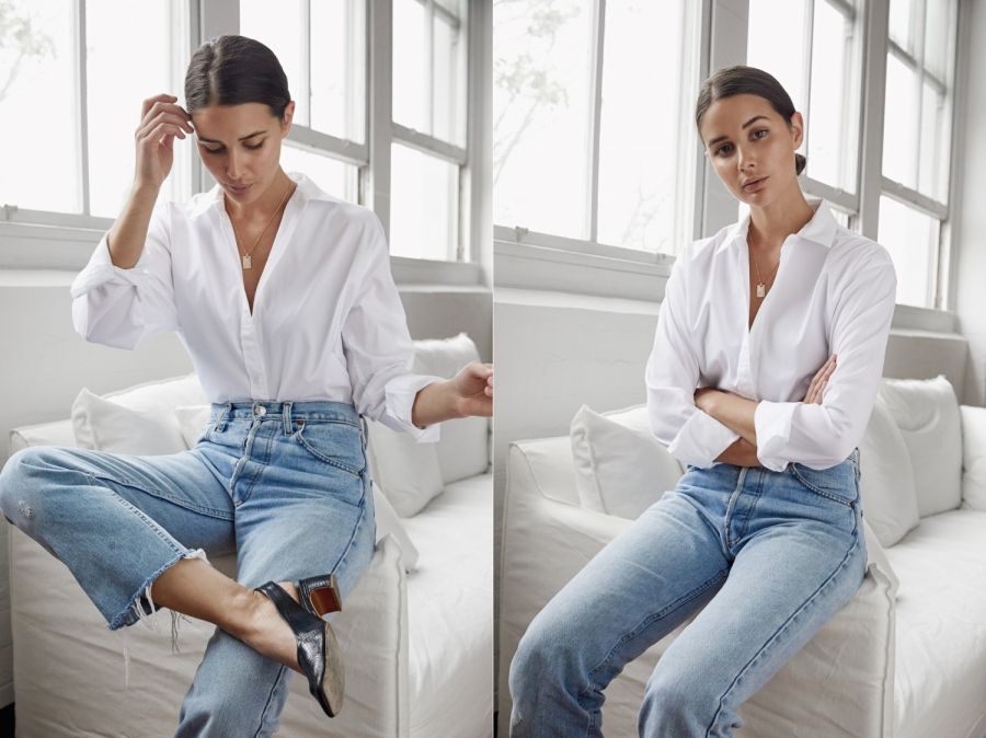 Une chemise blanche avec une coupe droite n’est pas moins élégante. Ce n’est pas trop large, contrairement à la version précédente. Par conséquent, l’image avec un jean est plus sobre. Dans certains cas, il peut même être porté au travail. Mais cela dépend uniquement de la sévérité du code vestimentaire. Au cas où vous auriez besoin de créer un look plus décontracté, choisissez des chaussures de sport plutôt que des chaussures. Il peut s’agir de baskets, de baskets surdimensionnées et de toute autre option. Cette combinaison est assez polyvalente et convient à la marche, au shopping et même aux excursions à la campagne.