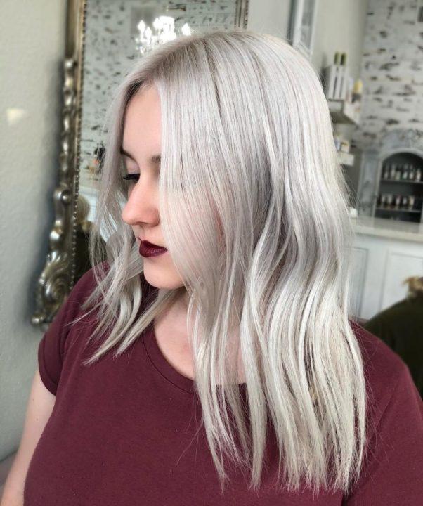 La teinte cendrée n’a pas quitté les premières positions depuis plusieurs saisons d’affilée. Cette couleur est parfaite pour une femme de tout âge, ce qui permet aux jeunes filles et aux femmes d’un âge considérable de la choisir. Bien sûr, une telle couleur nécessitera un soin particulier de votre part pour ne pas jaunir et teinter régulièrement les racines repoussées.