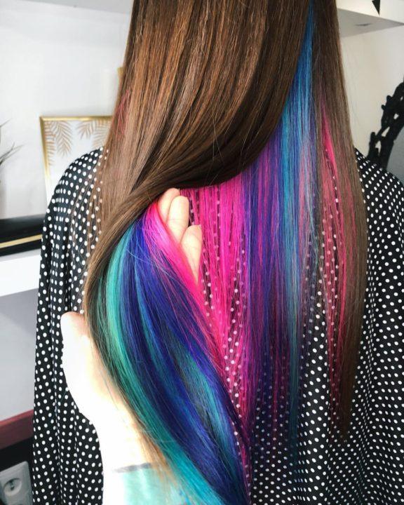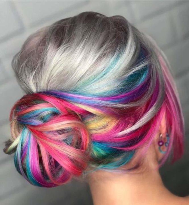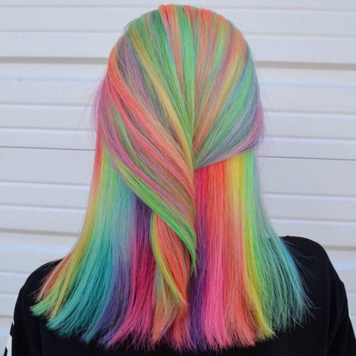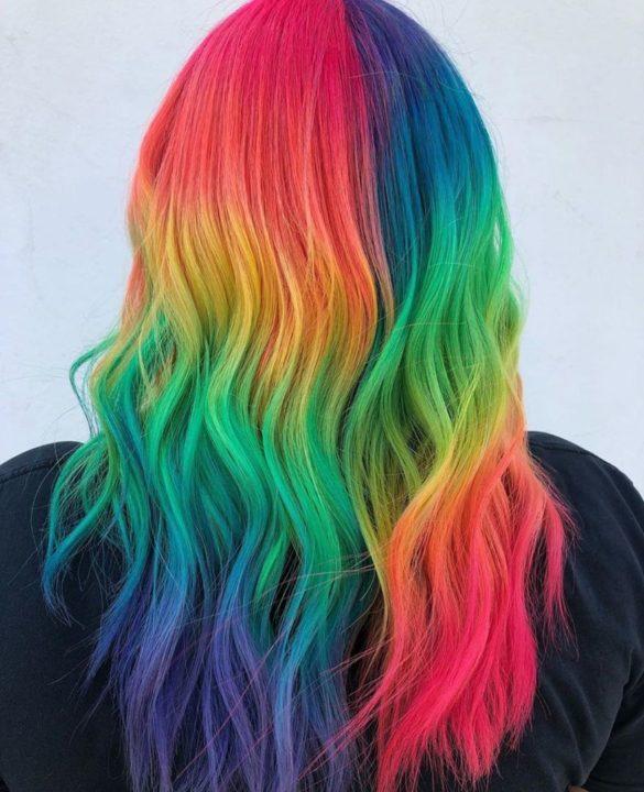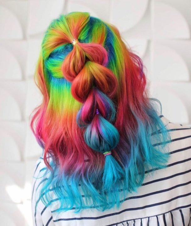 Aimez-vous tout ce qui est coloré? Alors la coloration arc-en-ciel est parfaite pour vous. La coloration arc-en-ciel sera particulièrement impressionnante sur les blondes, mais les brunes conviennent également très bien aux brunes.