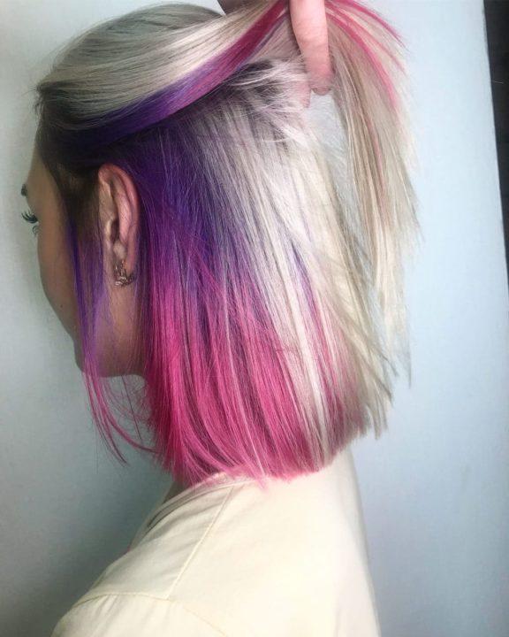 Cette technique est très similaire à l’ombre standard, mais présente encore quelques différences. Grâce à cette technique, le maître crée une belle transition en dégradé sur les cheveux de votre couleur naturelle aux extrémités lumineuses et néon des mèches.