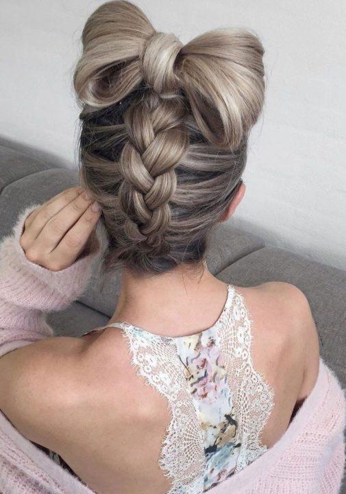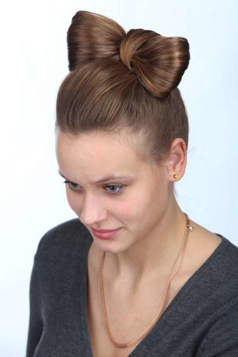 Un tel arc peut être fait pour des occasions spéciales au lieu du chignon habituel.