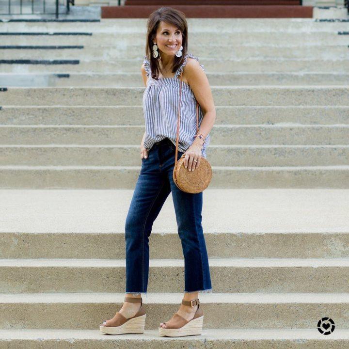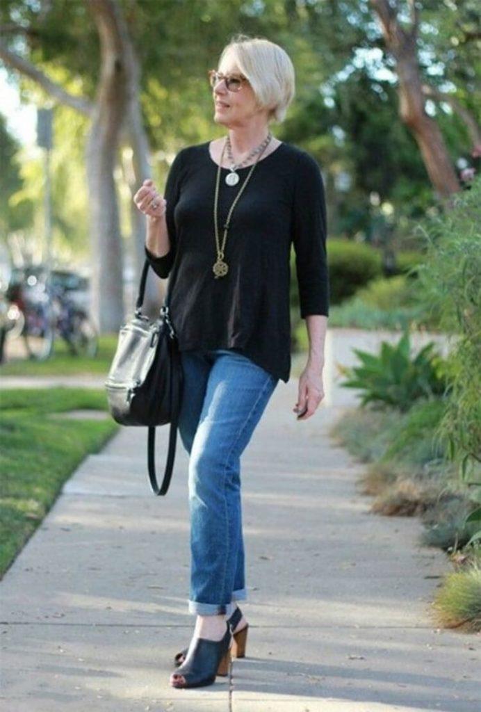 Qui a dit que les femmes de plus de 40 ans ne devraient pas porter de jeans et de leggings? Le port de telles choses est nécessaire et même obligatoire, car des jeans serrés et de haute qualité soulignent parfaitement les jambes élancées de leur propriétaire. Il ne vaut la peine de choisir que des modèles avec une taille rétrécie, des modèles de tabernacle ou des modèles où les jambes ont une coupe droite. Des options trop jeunes sembleront inappropriées.