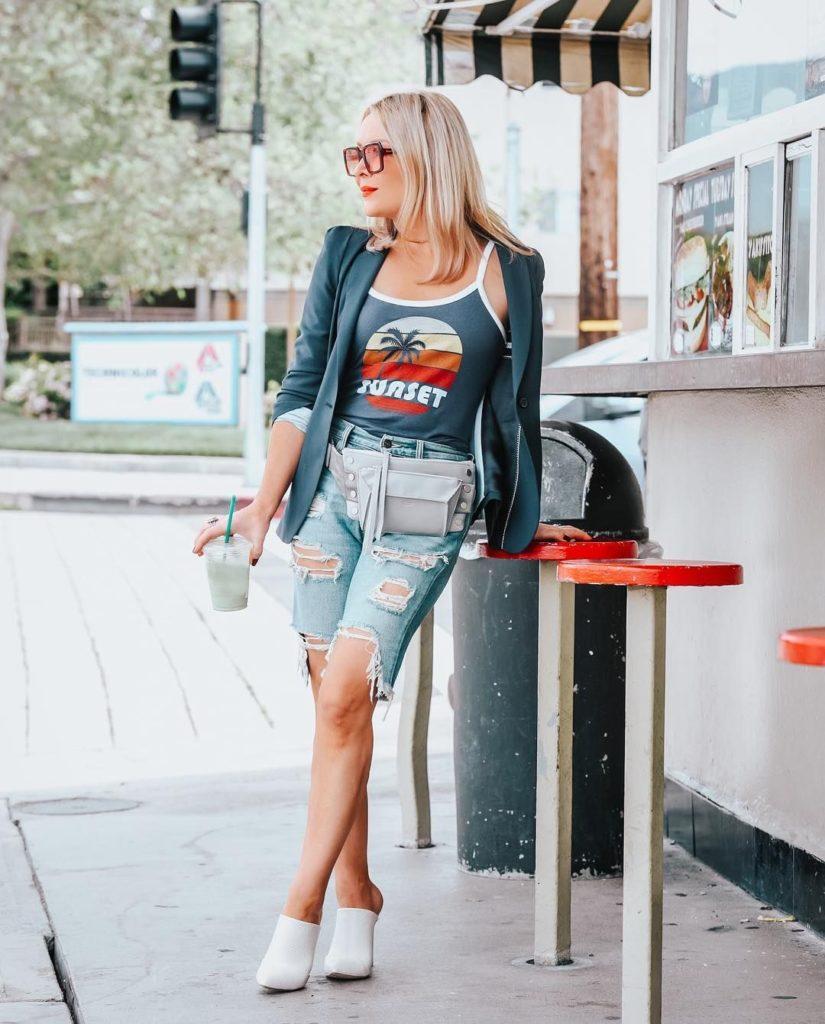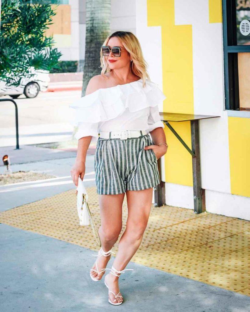Les shorts sont plus une version jeune des vêtements, mais si la silhouette d’une femme de plus de 40 ans semble élancée, la sélection de shorts est autorisée, mais pas trop courte. Ces shorts doivent avoir une longueur de jambe à mi-cuisse ou un peu moins. Tous les modèles conviennent: denim, tricot, lin et coton.