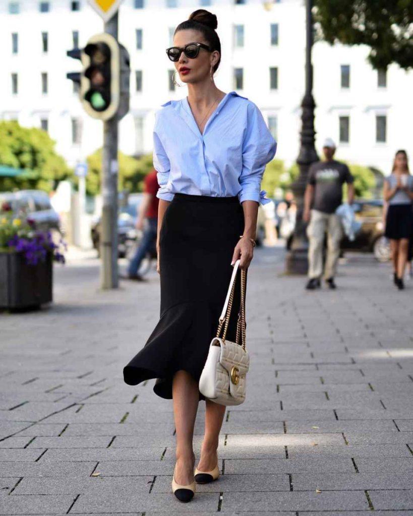 Les chemisiers conviennent pour compléter un look professionnel si vous choisissez un pantalon ou une jupe comme vêtement. Les chemisiers peuvent être faits de tissus plus épais et plus légers, avec des inserts supplémentaires, un décor, des accessoires et toutes les couleurs sont autorisées. Mais il vaut la peine de choisir la couleur en fonction du bas pour rendre l’image plus harmonieuse.