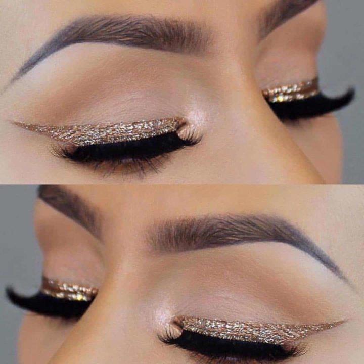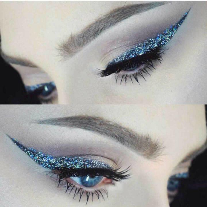 Pour ces tireurs brillants, utilisez un eye-liner pailleté ou fabriquez-en un vous-même. Cela peut être fait avec un apprêt à paillettes et les paillettes elles-mêmes.