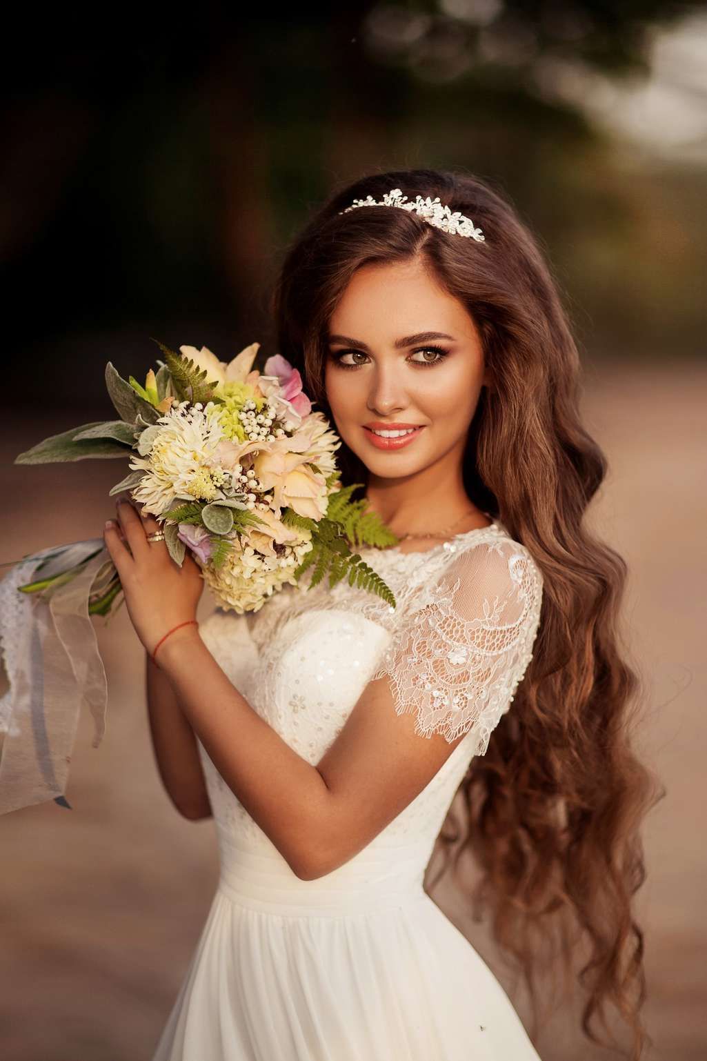 Beaucoup jugeront un tel exemple trop simple et ne conviendra pas à un événement aussi solennel qu’un mariage, mais nous vous assurons que les propriétaires de cheveux longs peuvent se permettre en toute confiance de démontrer leur luxe naturel à leur choix et à leurs invités, ce qui, soit dit en passant, tout le monde ne peut pas se vanter. La règle principale est d’avoir des cheveux sains, bien coiffés et propres. Si vous êtes la maîtresse des cheveux lisses et lisses, vous devez en outre fixer l’effet naturel avec un fer à repasser. Pour les jeunes femmes aux boucles bouclées, vous pouvez appliquer un peu de coiffage sur leurs cheveux pour éliminer les «peluches» excessives. Un diadème soigné, une couronne, une paire d’épingles à cheveux étincelantes ou un manque total de bijoux – et vous êtes prêt à conquérir à nouveau le cœur de votre bien-aimé.