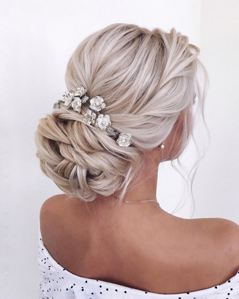 Cela ne vous a pas semblé. Le chignon ordinaire, si courant dans la vie quotidienne, est l’une des propositions de style de mariée à la mode 2020. Il peut être situé haut sur la couronne et formé d’une queue lisse ou légèrement pelucheuse, ou il peut être magnifiquement formé sur le côté et se composer de tresses volumineuses. Un chignon de mariée décore à l’origine les cheveux légèrement peignés avec une séparation latérale, est magnifique sur les cheveux légèrement bouclés et peut magnifiquement compléter le tressage latéral à l’arrière de la tête. Coiffure à volonté, peut être complétée par des accessoires ou des bijoux.