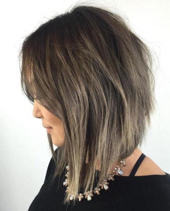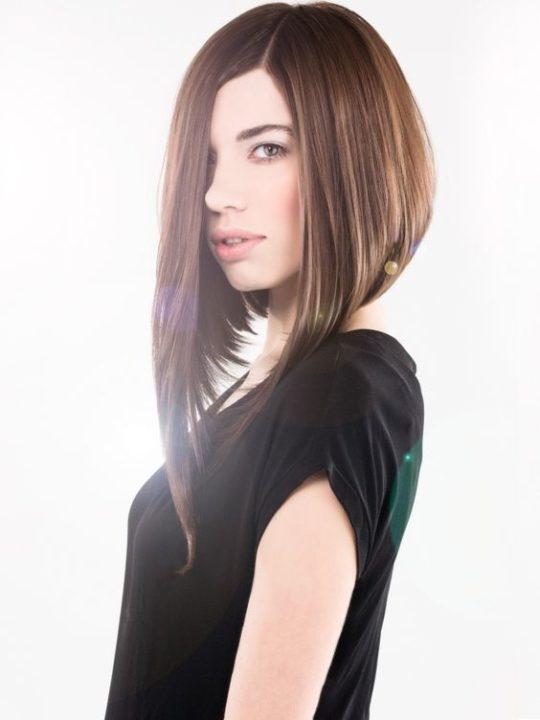 Une coupe de cheveux asymétrique bob-bob pour les cheveux longs sera particulièrement intéressante. C’est une approche très originale qui permet d’exprimer votre personnage même sans mots. Utilisez ce look avec une coloration à la mode et créative, puis votre image deviendra certainement un sujet d’imitation.