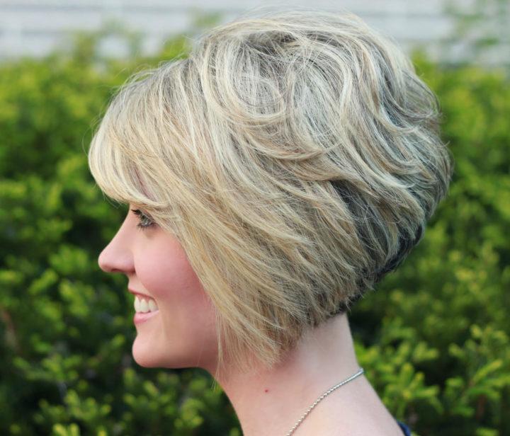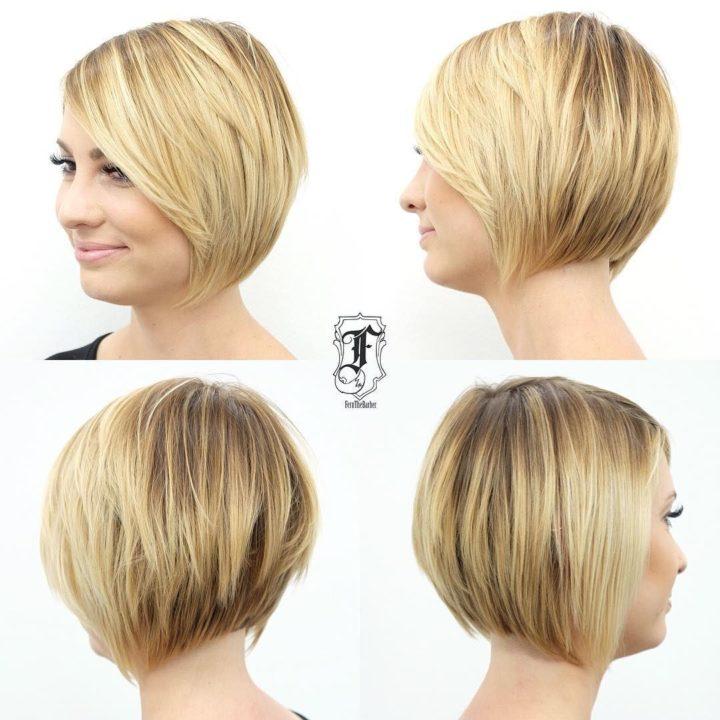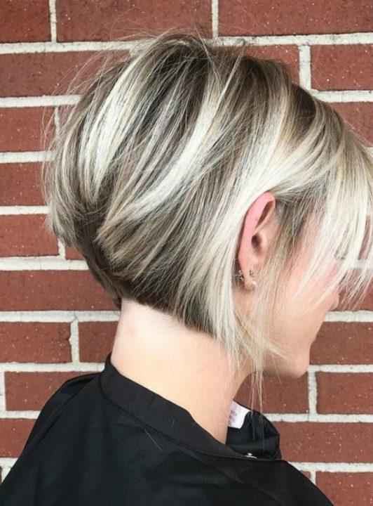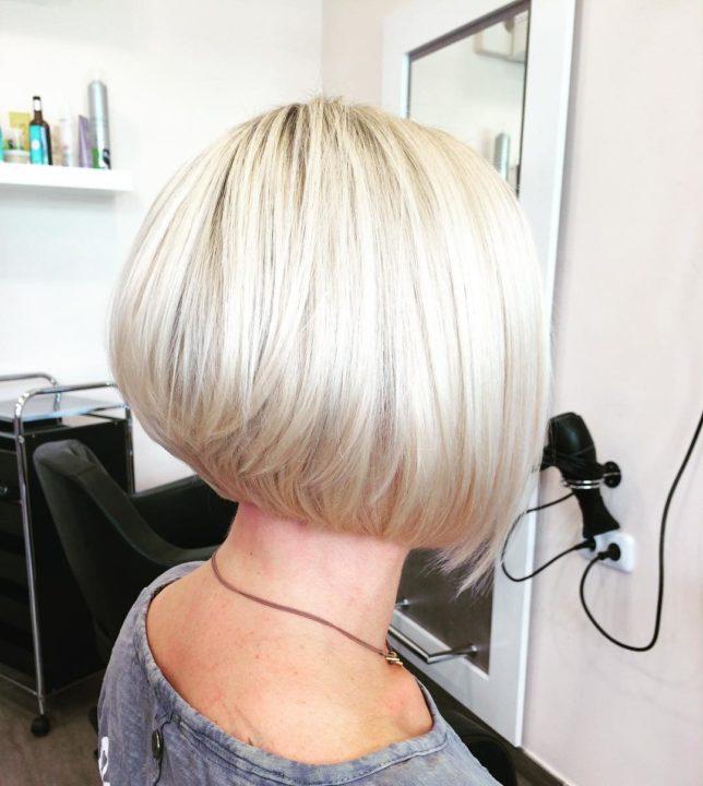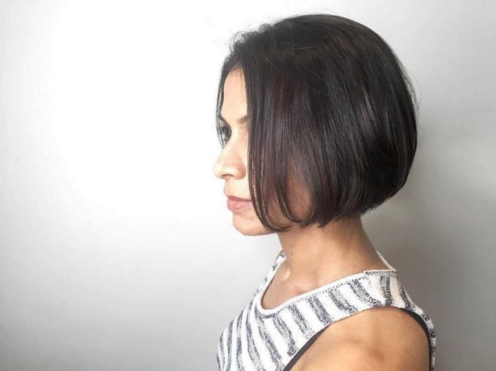 Un dos court de la tête et des brins allongés à l’avant distinguent ce look des autres. Si vous avez un visage rond, un carré carré allongé pourra l’étirer, rapprochant un ovale du type de visage classique.