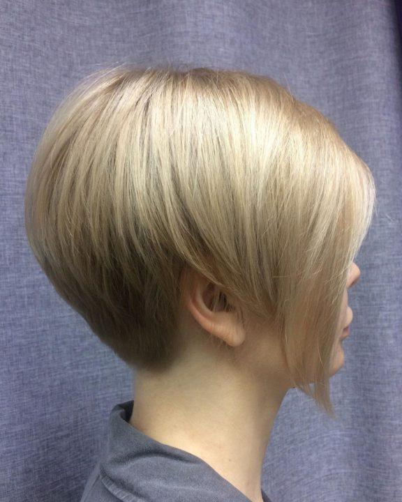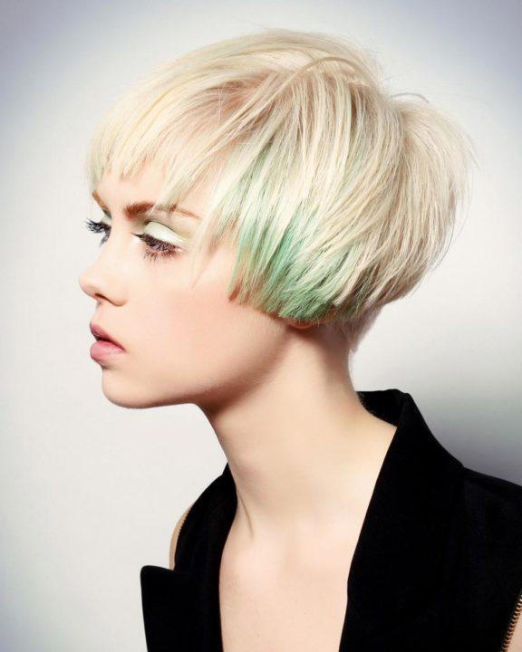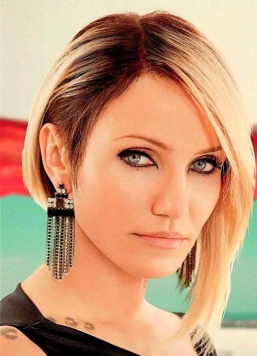 Je voudrais souligner une place distincte dans notre article pour une coupe de cheveux bob-bob avec une frange oblique. Il s’agit d’une coupe de cheveux plus jeune qui aidera à égayer n’importe quel look et à ajouter du volume à vos cheveux.