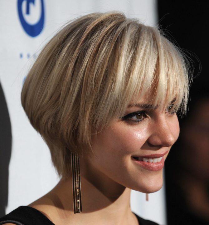 Si vous n’aimez pas les franges obliques, ce n’est pas grave, car une coupe de cheveux en bob vous permet de porter n’importe quel type de frange. Lisse, graduée, d’un côté, allongée et également fraisée. Les franges sont bonnes en ce sens qu’elles cachent un front massif et aident également à couvrir les imperfections cutanées qui apparaissent souvent sur le front.