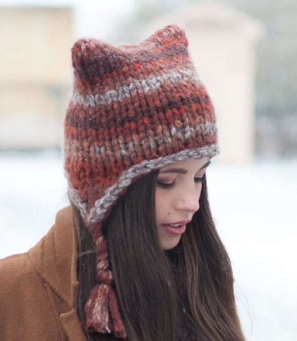 Un autre chapeau qui ajoute du piquant à l’image est un chapeau avec des oreilles. Les oreilles elles-mêmes peuvent être vraiment comme des oreilles de chat, ou elles peuvent être présentées comme l’esprit des pompons, ce qui est assez intéressant et inhabituel.
