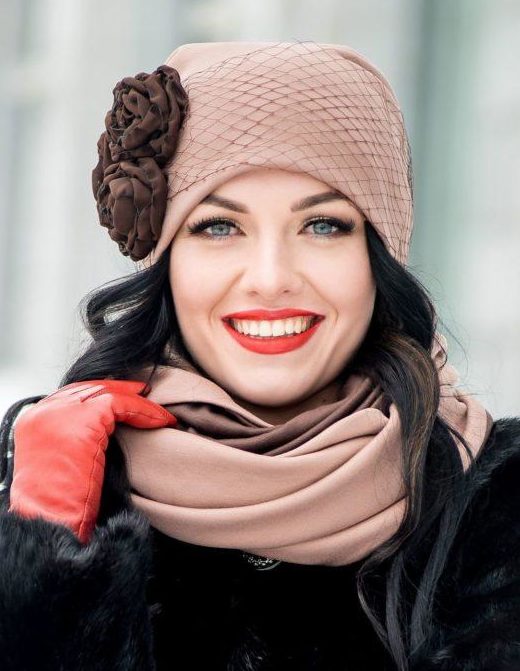 C’est le chapeau le plus polyvalent qui peut être facilement et simplement combiné avec une tenue décontractée, ainsi qu’avec une tenue de soirée: une doudoune, une robe et des bottes en daim à talons hauts. Un excellent choix pour tout événement en plein air.