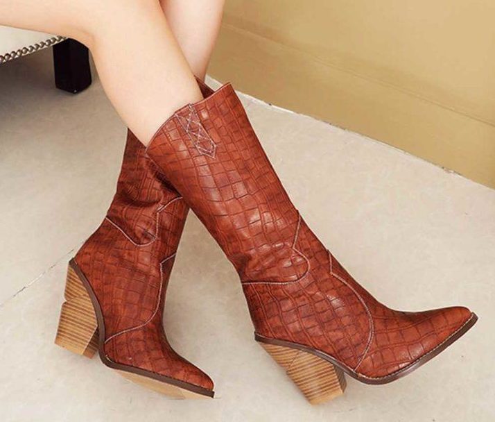 Le talon lui-même n’est pas nécessairement en bois, mais uniquement stylisé comme un arbre. Cette tendance deviendra mégapopulaire pendant la saison hivernale. Ici, un choix de produits hauts et courts, bottes classiques et bas est autorisé, où le détail principal est le talon. Selon le style du talon lui-même, il peut être large, haut, raccourci, bas, rectangulaire ou même oblique.