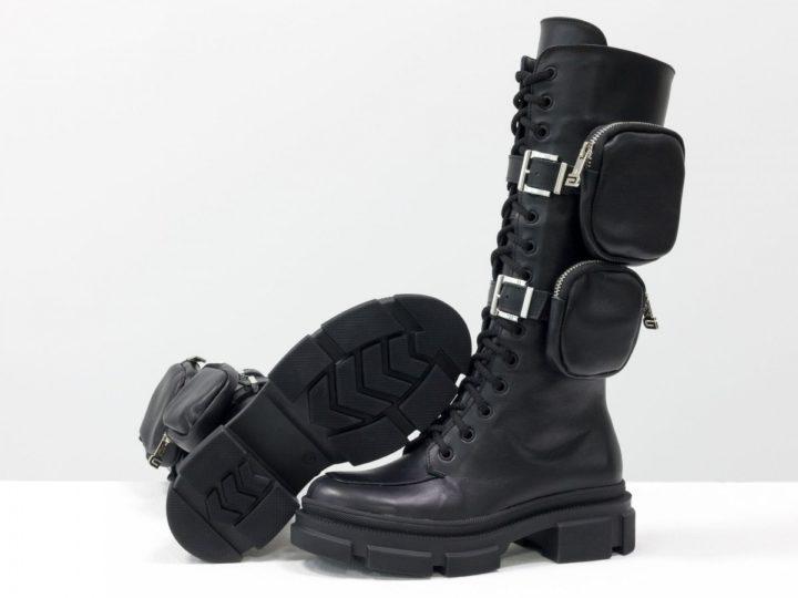 Des bottes inhabituelles avec des poches vous surprendront certainement. Habituellement, une ou plusieurs poches sont situées sur la tige de la chaussure. Il peut s’agir de produits faux ou à part entière avec une fermeture éclair ou un bouton. Les poches elles-mêmes sont très petites, vous pouvez donc y ranger de petits objets ou des bagatelles.