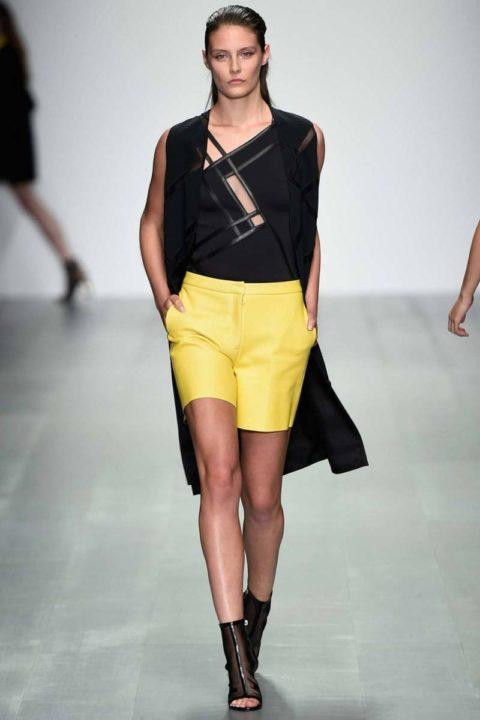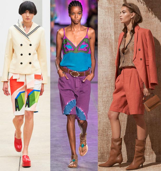 Cette saison, les shorts sont à l’origine combinés avec des chemisiers, ainsi que des vestes dans des ensembles multicouches.