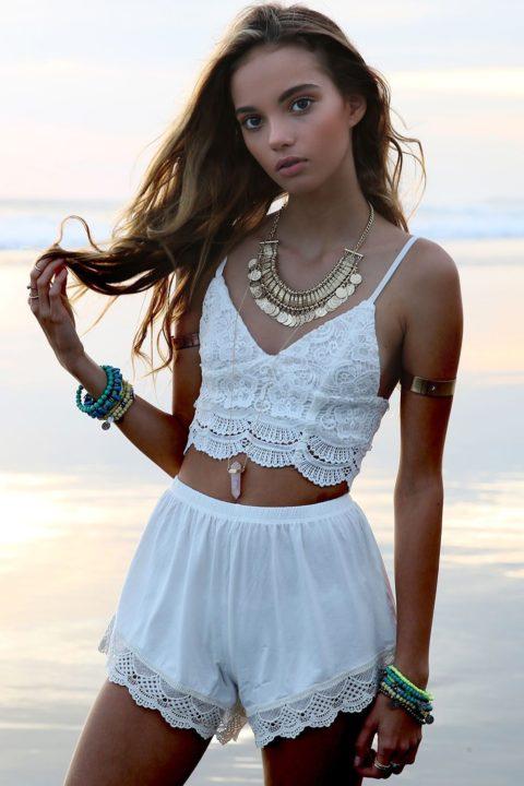 Une autre tendance des collections d’été est le short avec bordure en dentelle. Ce décor donne avec tendresse et originalité.