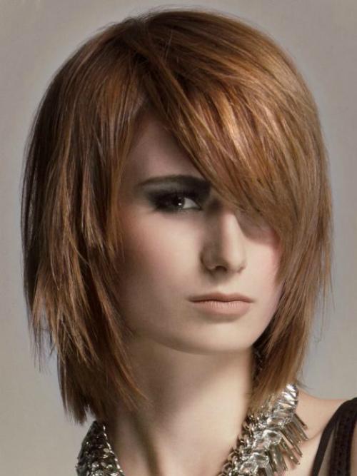 Aurora pour cheveux de longueur moyenne est une coupe de cheveux aérée à plusieurs niveaux qui passe facilement de stricte à ludique et inversement. Tournez les boucles vers votre visage pour masquer l’angularité et rétrécissez-la un peu. Avec une telle coupe de cheveux, une longue frange oblique a l’air bien.