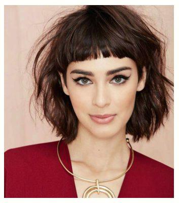 Les cheveux peuvent être bouclés et même, droits peuvent être décorés avec une frange, oblique ou même, peu importe. Avec une frange droite, l’image acquiert une géométrie stricte, avec une légèreté élégante oblique.