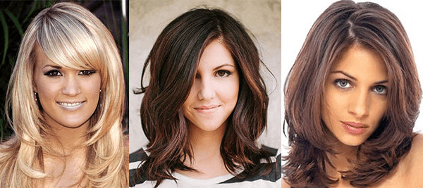 La longueur moyenne convient le mieux à votre type de visage. Une échelle qui part du milieu du visage, avec une cascade, est le meilleur choix.