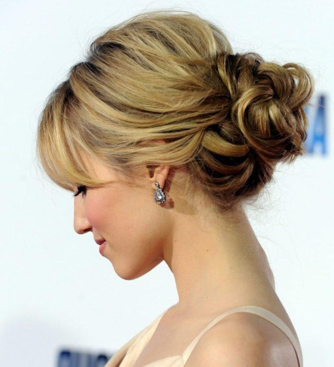 Les cheveux moyens ont fière allure dans les petits pains. Et plus le chignon est volumineux, plus la coiffure sera féminine. Vous pouvez boucler vos cheveux avec un fer à friser ou un bigoudi pour rendre le chignon encore plus volumineux. Ou vous pouvez simplement créer une version élégante et simple de la poutre. Pour plus de commodité, vous pouvez utiliser une bande élastique spéciale qui aidera à former un paquet.
