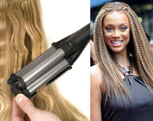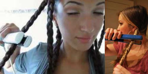 En utilisant une méthode éprouvée bien connue, vous obtiendrez de petites boucles – tressez vos cheveux en nattes. Inutile de les tresser avant d’aller au lit et de les garder jusqu’au matin pour obtenir l’effet. Nous tressons les tresses et les attrapons avec un fer à repasser et attendons qu’elles refroidissent. Cela peut également être fait avec des pinces ondulées. L’astuce est que vous devez le faire sur cheveux secs.