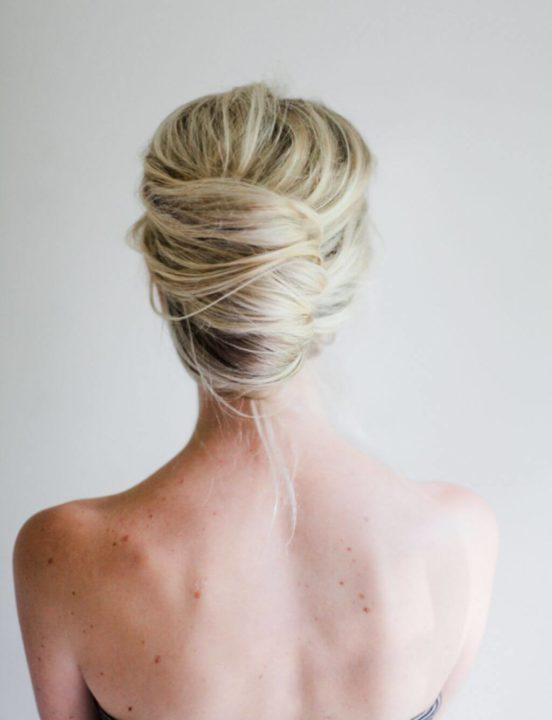 Ne pensez pas qu’un chignon est une coiffure trop simple et pas jolie qui ne convient pas pour un bal de promo. Parce que le faisceau est très polyvalent. Il aide à ouvrir la vue de votre cou, parfait pour une tenue sans bretelles.