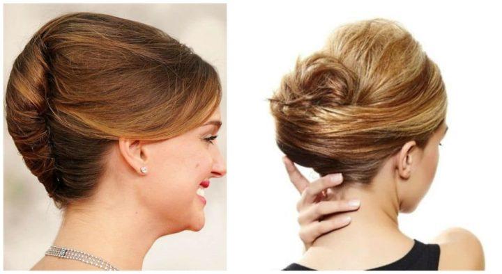 Le faisceau peut être fait bas, ce qui donnera à l’image austérité et élégance. Ou vous pouvez tordre vos cheveux et les attacher avec un élastique corporel ou utiliser des épingles à cheveux.