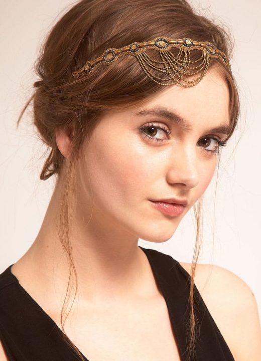 Une coiffure romantique à la grecque conviendra aux filles de tout type de visage. Il est parfait pour les cheveux courts, vous permettant de créer un look charmant. Des créoles brillantes et nacrées, des ceintures en soie et des créoles en cuivre souple peuvent être utilisées comme serre-tête pour une coiffure.