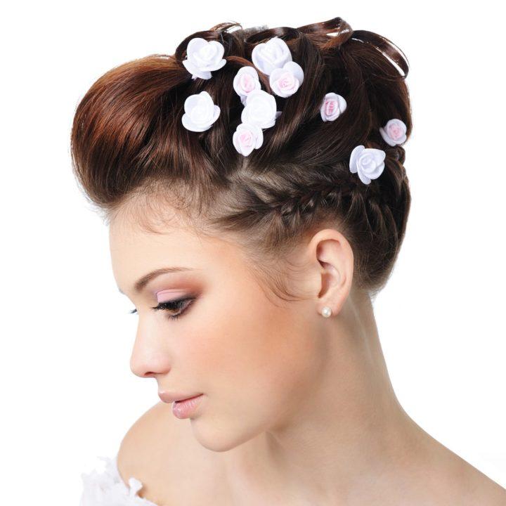 Des coiffures inhabituellement délicates et mignonnes avec des fleurs vous permettront de créer un look féminin et magnifique sur votre bal. À propos, les fleurs peuvent être vivantes, ce qui rendra votre coiffure très originale et attrayante.