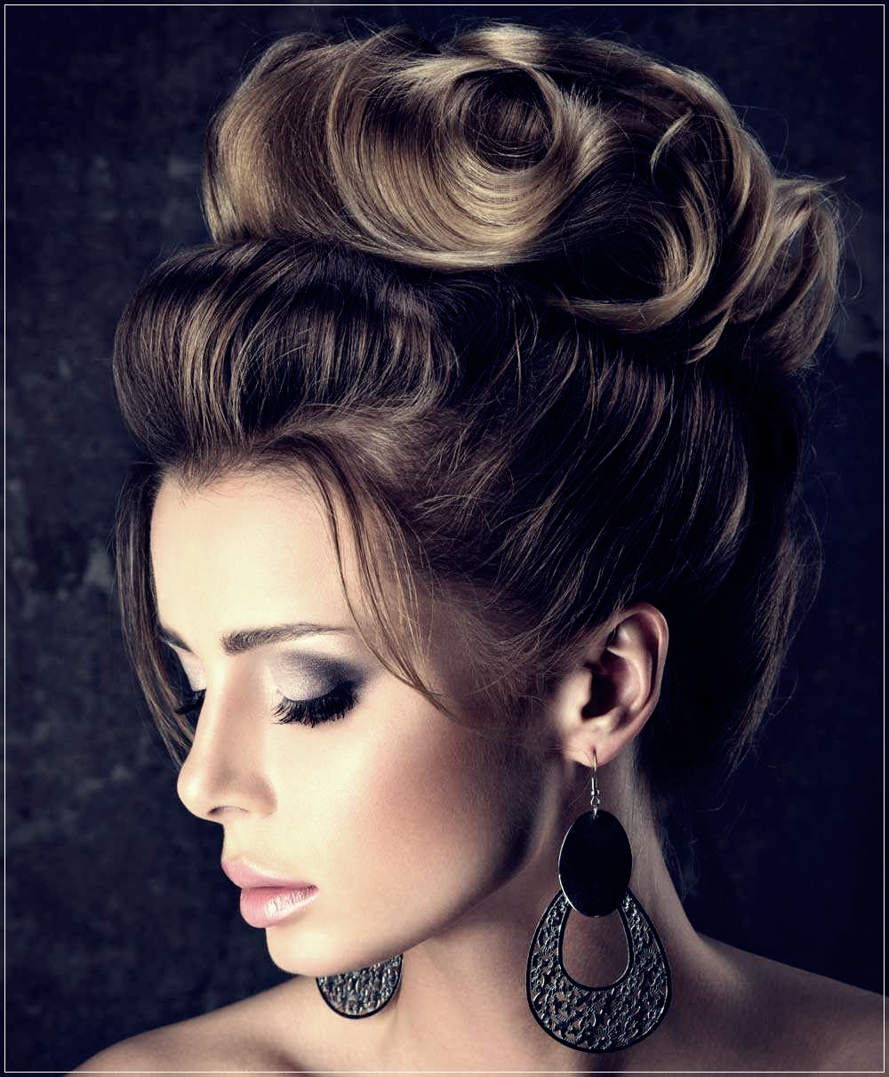 Une coiffure en chignon offre aux belles dames de nombreux types de coiffage, ce qui rend cette méthode de coiffage simple très populaire. Les cheveux peuvent être peignés en douceur ou, au contraire, avoir l’air légèrement échevelés. Le chignon peut être placé haut sur le dessus de la tête, décorer les cheveux à l’arrière de la tête ou se former magnifiquement sur le côté. Pour le coiffage, vous pouvez utiliser des boucles lisses, moelleuses ou bouclées comme « matériau de construction ». Un paquet de tresses « bâclées », épinglées et décorées d’accessoires ou d’une jolie pince à cheveux, n’a pas l’air moins original. Les coiffures de ce type soulignent très élégamment la ligne du cou et du décolleté et sont très féminines.