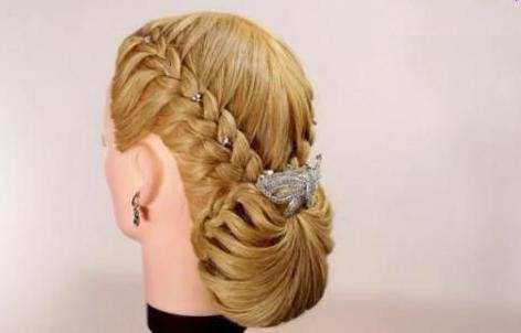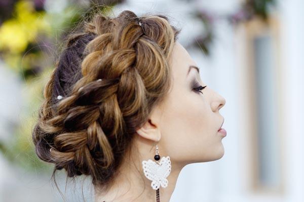 Une option simple et populaire avec une tresse latérale décorée d’épingles à cheveux originales. FauxLa couronne est une magnifique coiffure de soirée pour une réception formelle. Et une femme avec une telle coiffure se sent comme une reine.