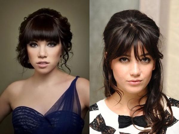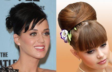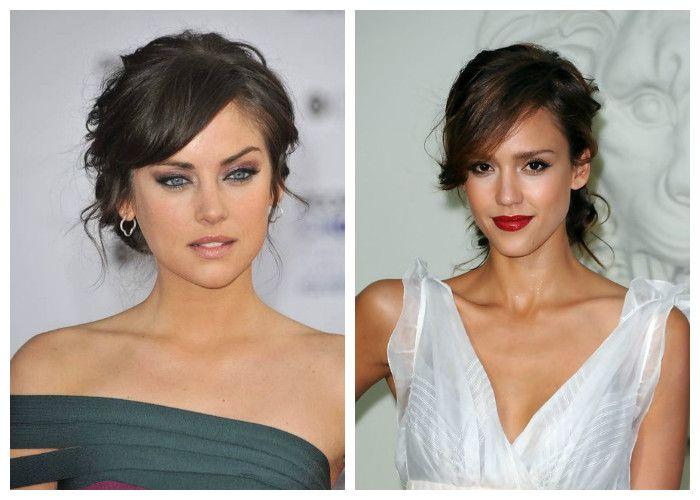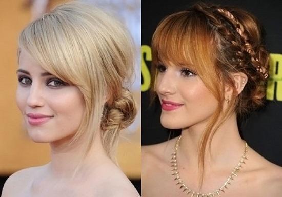 Récemment, une option impeccable pour les coiffures du soir est devenue des queues et des petits pains de style quotidien, de diverses variations, avec une frange brillamment soulignée. Cette option convient aux franges asymétriques, aux franges droites classiques ou arquées. Dans le style combiné, un élément indépendant est apparu – un beau bang spectaculaire.