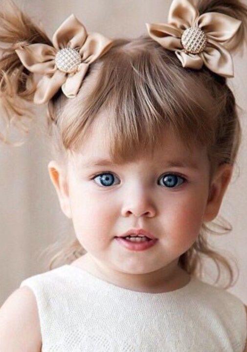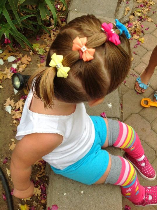 Et pour personnaliser votre fille, vous pouvez modifier les queues de cheval habituelles. Par exemple, ajoutez de beaux nœuds ou épingles à cheveux, tordez un peu les cheveux.