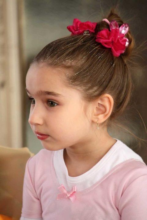 Les gulki pour filles sont le plus souvent pratiqués pour la danse ou la gymnastique. Mais cette coiffure est parfaite pour une maternelle pour tous les jours.