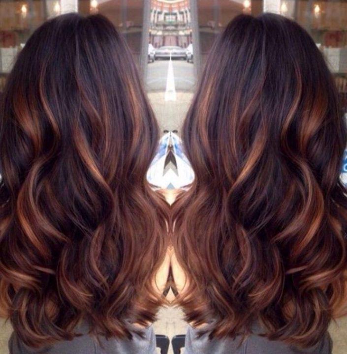 Les coupes de cheveux les plus rentables pour la coloration des cheveux longs seront un bob et une cascade, car ils sont capables d’ajouter du volume même aux cheveux fins. Afin de ne pas perdre de volume, la couleur est choisie plus proche de la teinte naturelle et avec des tons similaires. Pour les cheveux foncés, les reflets, le balayage et l’ombre sont les meilleures options.