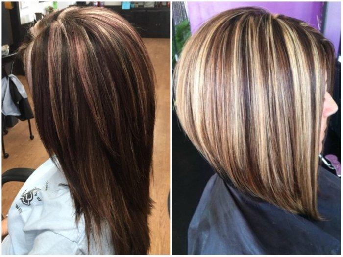 Coloration – la coloration des cheveux dans différentes nuances, peut être du même ton ou différente, utilisée jusqu’à 15 nuances, sur les cheveux longs jusqu’à 20.