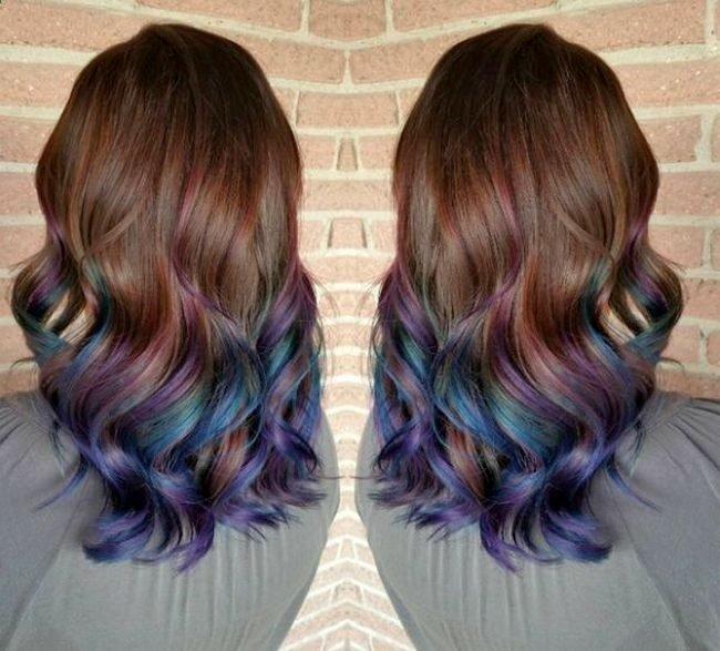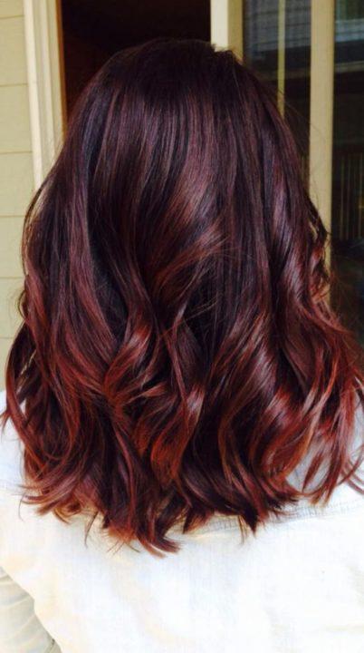 Les propriétaires de cheveux foncés doivent se teindre les cheveux plusieurs fois pour changer la couleur, car les cheveux foncés ne peuvent être éclaircis que de 3 nuances à la fois. Pour les brunes, les nuances sont recommandées: bordeaux, marron clair, miel clair. Sur les cheveux foncés, vous pouvez essayer différentes méthodes de coloration: pour créer une teinte naturelle proche du naturel, vous pouvez réaliser une coloration en utilisant des tons vifs et néon.