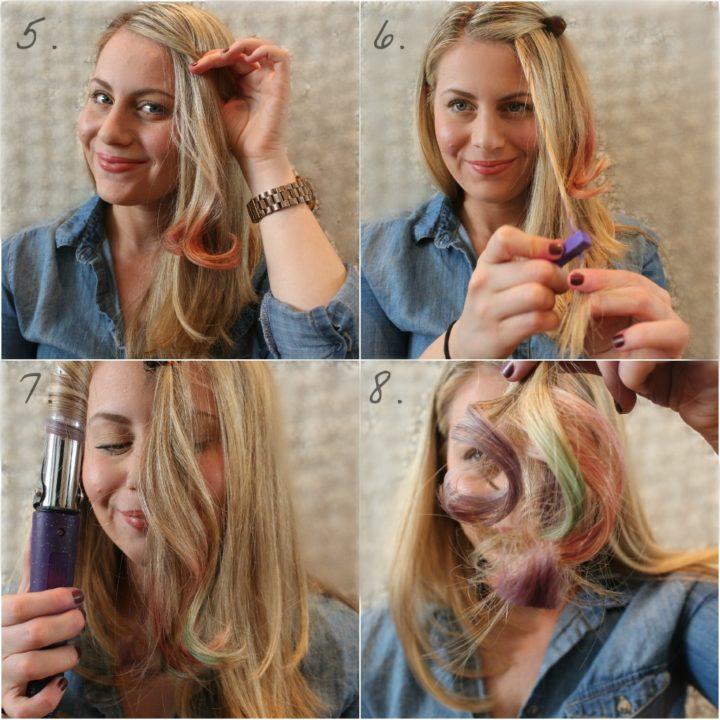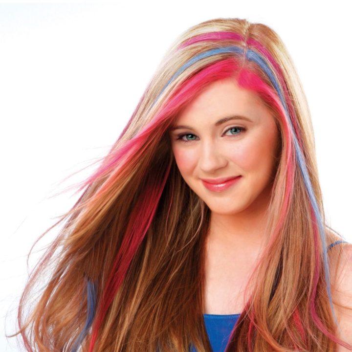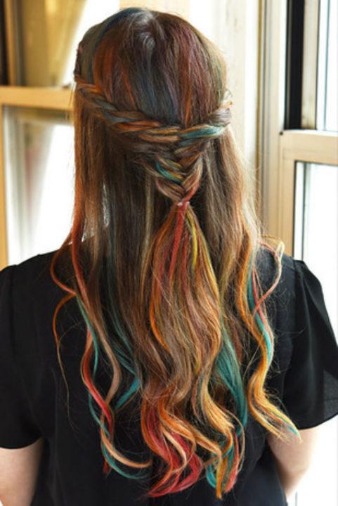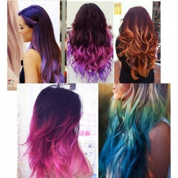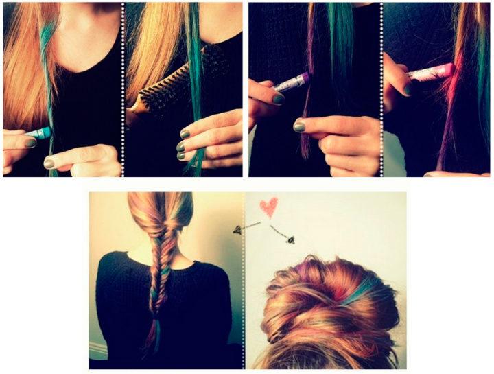 Une fois la mèche doit être séchée avec un sèche-cheveux et le résultat lui-même peut être fixé avec de la laque. Ici, vous êtes libre de choisir n’importe quelle couleur de coloration avec des crayons de couleur. Créez une option de teinture à une seule couleur, multicolore, arc-en-ciel ou ombre.