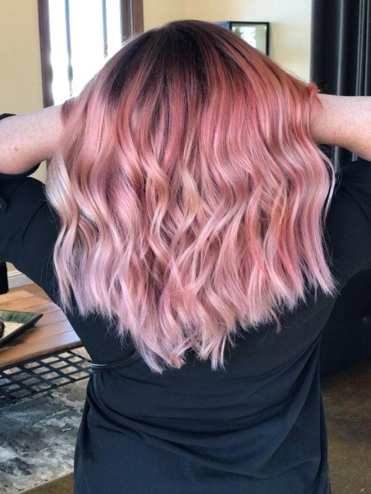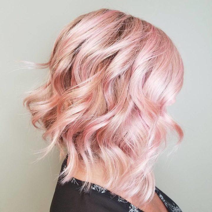 Les ondes lumineuses sont incroyables sur toutes les couleurs de cheveux. Et quelle belle irisation sur les cheveux sera visible une fois teints dans une couleur rose pâle.
