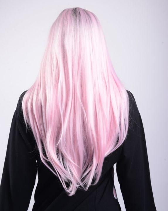 Si vous ne voulez pas vous embêter avec des boucles bouclées, les cheveux raides dans une version rose tendre sont également une excellente option.