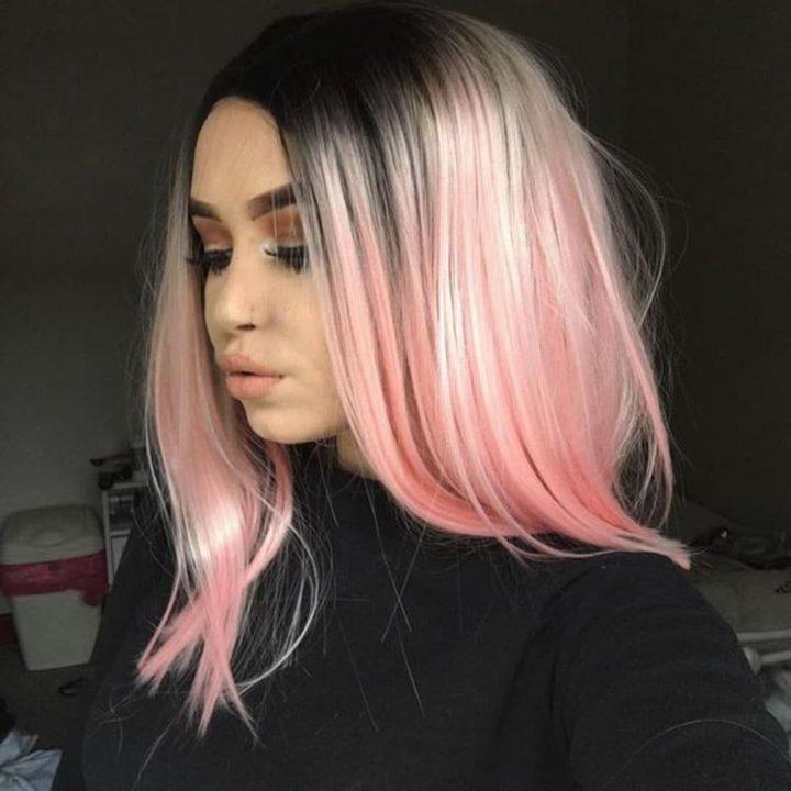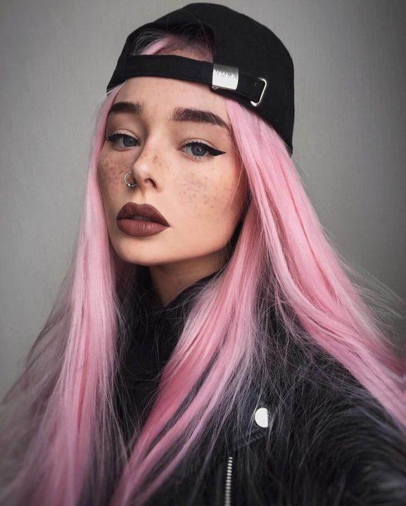 Il peut sembler à certains que la combinaison de cheveux rose clair et de racines foncées n’est que des cheveux qui n’ont pas été teints depuis longtemps, mais non. Il s’agit d’un type particulier de coloration. De plus, c’est assez à la mode et moderne.